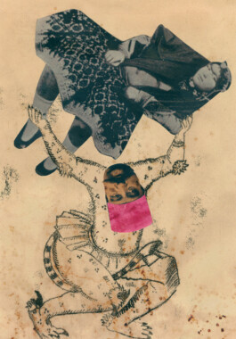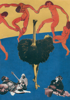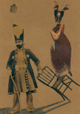 In dieser Arbeit habe ich historische Fotos von Haremsfrauen mit Fotos des Königs Naser al-Din Shah zusammen mit Teilen westlicher Meisterwerke wie Botticellis Die Geburt der Venus, Michelangelos Schöpfung und einige Werke des Modernisten Henri Matisse zusammengestellt. Auf diese Weise wollte ich die komplizierte Situation der kulturellen Begegnungen zwischen Ost und West und ihre Einflüsse auf das Leben von Frauen aufzeigen.